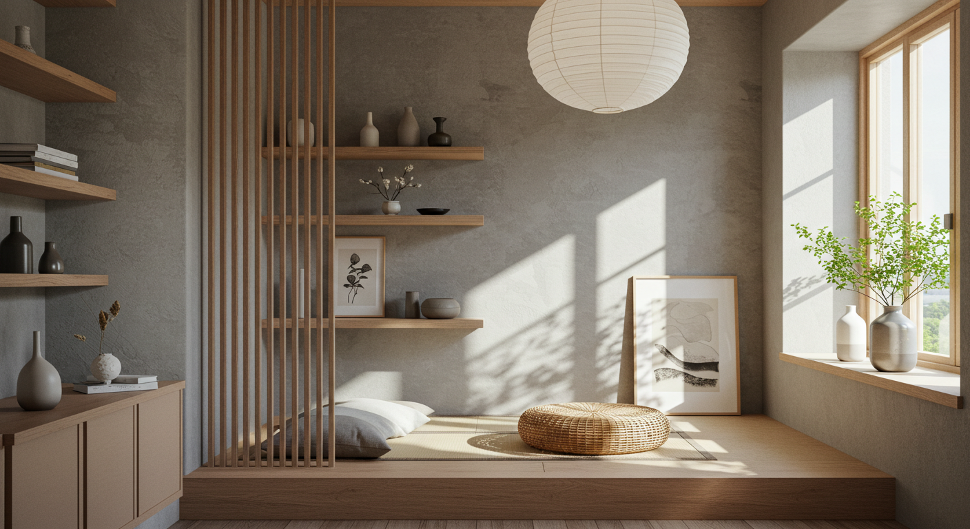 日本の和室では「間(ま)」を大切にし、余白を活かした空間づくりが基本です。家具を最小限に抑え、部屋全体に静けさとゆとりを持たせるスタイルは、まさに韓国風インテリアにも通じるもの。