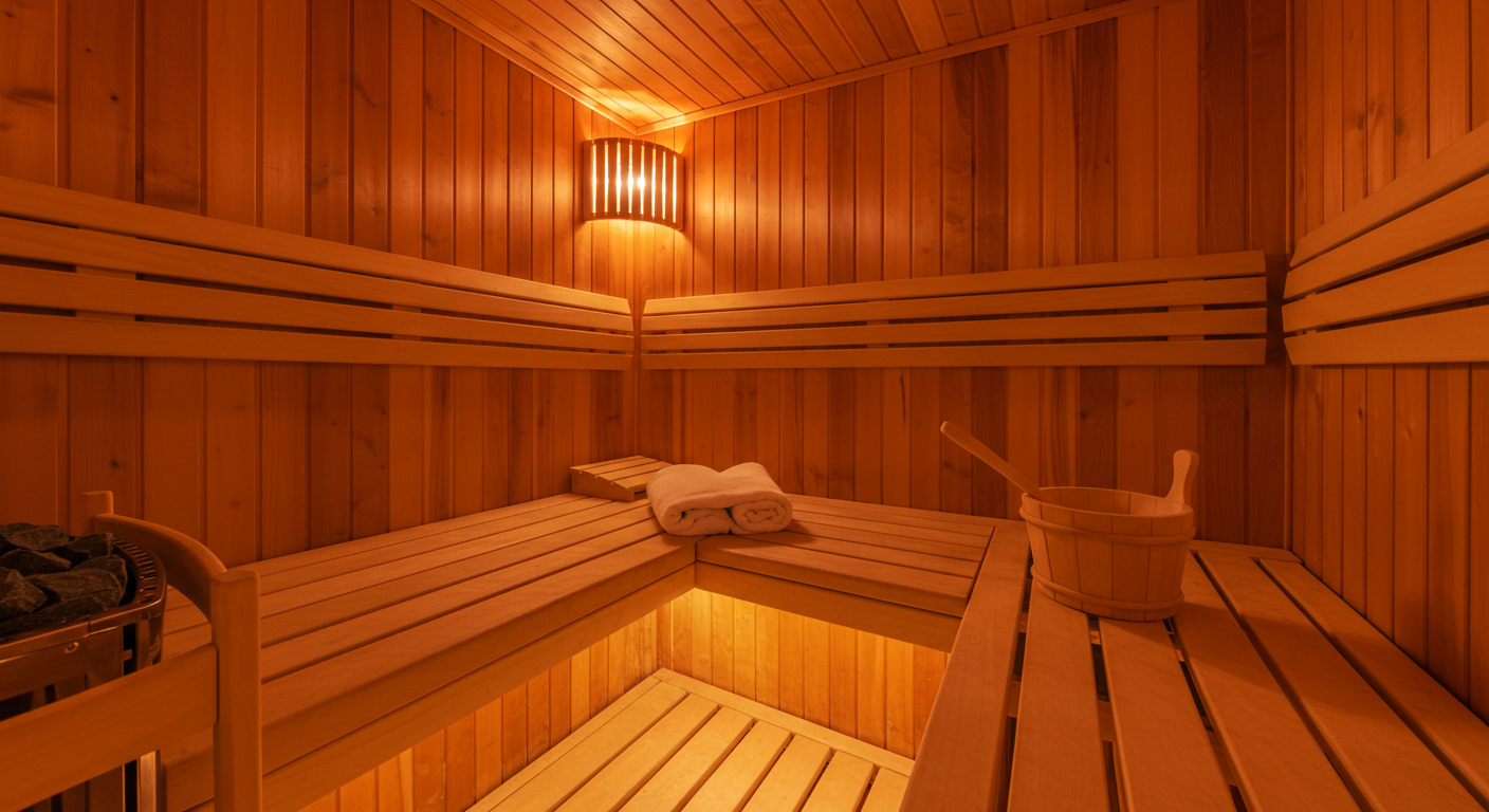 仕事から帰って、自宅のサウナで汗を流し、疲れをデトックス