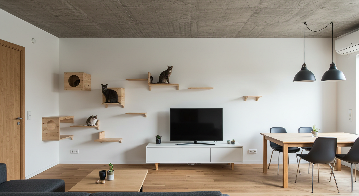✔ キャットタワーや爪とぎポールを「専用の遊び場」として設置